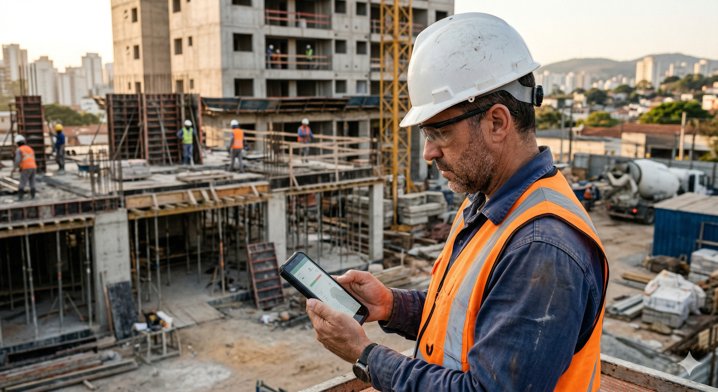 A gente acredita que tecnologia só faz sentido quando melhora a rotina de quem vive a construção.